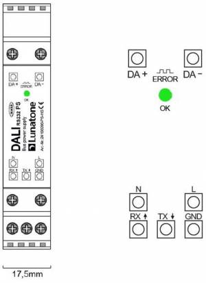 Az RS232 bekötése trükkös lehet. A GND-k közösek, a TX és RX viszont mindig az eszköz szempontjából feliratozott, tehát ami egyik oldalon vétel, az a másikon adás, a TX-et RX-szel kötjük szembe (keresztben). Némelyik kínai csatlakozón a TS-Rx-et nem annak az eszköznek a szempontjából írják rá, amibe bedugod, hanem azéból, amilyikből érkező kábeleket bekötöd, ilyenkor már Tx-Tx, Rx-Rx kötés kell… A szokásos háromvezetékes minimum mellett a Lunetone-nál valószínűleg nem, Tridonicnál viszont kötelező a DTR és RTS bekötése is, ami abból a szempontból is fontos, hogy nem alkalmas a három bekötési pontot tartalmazó DB9-es sorkapocs.